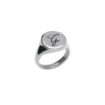 Anello elegante con sigillo tondo caratterizzato da una superficie piatta che può essere incisa con le tue iniziali, una data importante o un messaggio speciale. Il tutto può essere impreziosito da un diamantino.